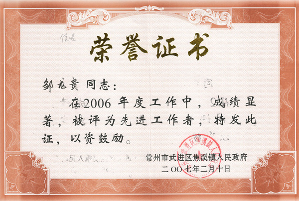 獲獎證書